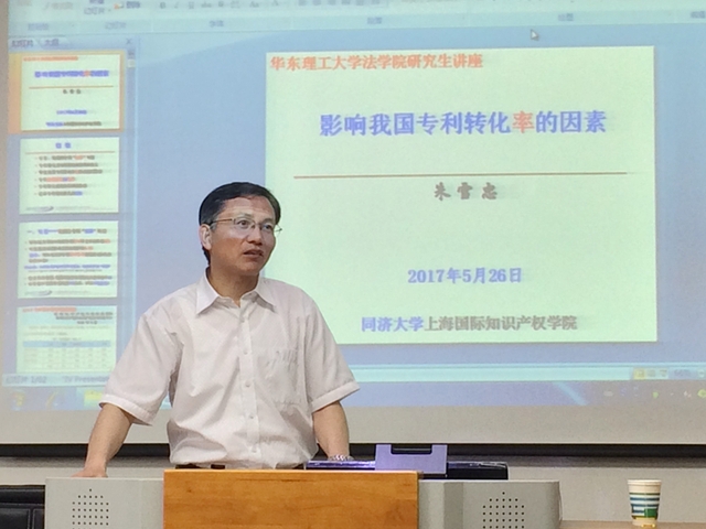 5月26日下午,伟德体育邀请同济大学知识产权公司经理朱雪忠教授为公司师生带来题为“专利成果转化率及其影响因素”的专题讲座。伟德体育知识产权研究中心傅利英、徐明以及来自各公司的研究生参与了此次讲座。本场讲座也是作为公司65周年校庆讲座(研究生)暨名师讲坛的重要活动之一。