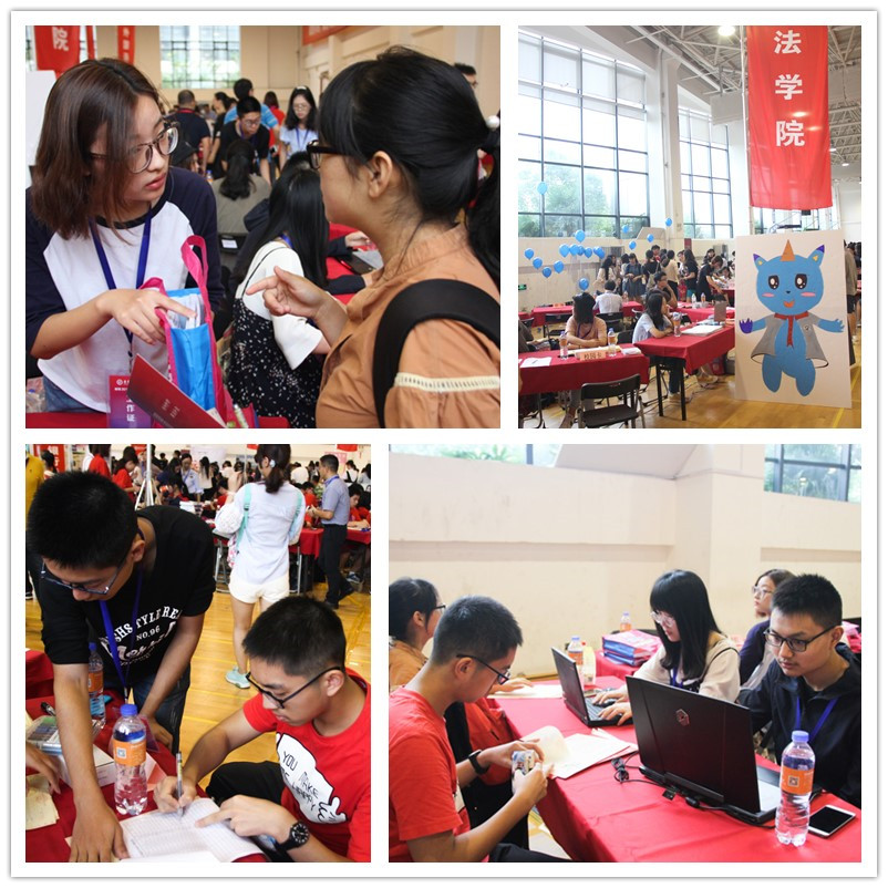 走进奉贤体育馆副馆,高高矗立的伟德体育红色旗帜和公司吉祥物“法之灵”指引着新生们找到“组织”。志愿者学长学姐们也全程为新生服务,指引着他们顺利完成报到流程,为他们解答各种疑惑。