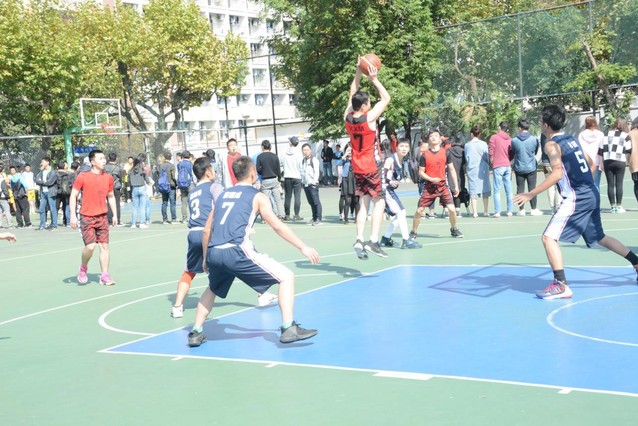 10月24日中午,徐汇校区篮球场上,由校研究生会举办的秋韵节篮球赛正在激烈进行中。公司研二刘洋与研一田潇洋、张冰剑、吴胜寒四位同学与社会公司组成法社联队对阵材料公司。
