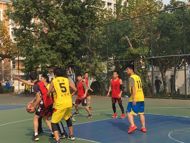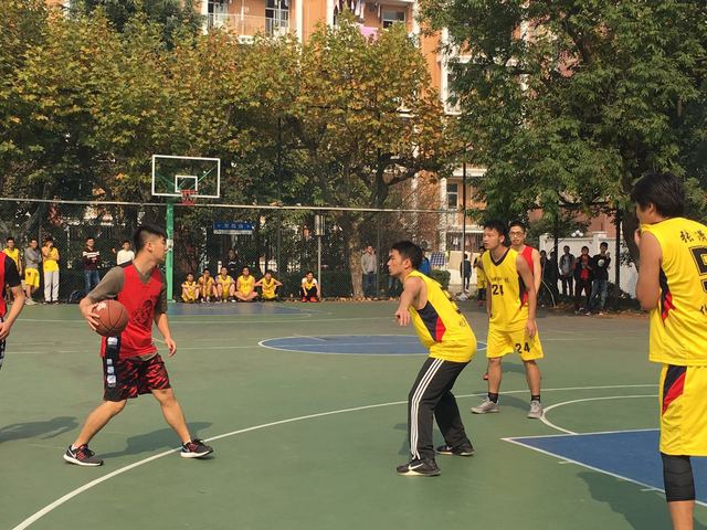 11月1日和3日中午,徐汇校区篮球场上,研究生秋韵节篮球赛小组赛的最后两场顺利举行。由公司研究生吴胜寒、田潇洋与社会公司组成的法社联队分别对阵艺设公司、化学公司。经过队员们地奋力拼搏,抢球、传球、投篮,双方你争我夺,赛场旁啦啦队员们一阵高过一阵的呐喊助威为比赛增添了紧张。最终比赛结果一胜一负,宣告秋韵节篮球赛小组赛顺利落幕。