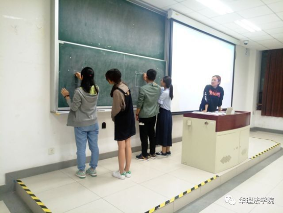 两组同学通过肢体语言将内容依次传递给最后一位同学。
