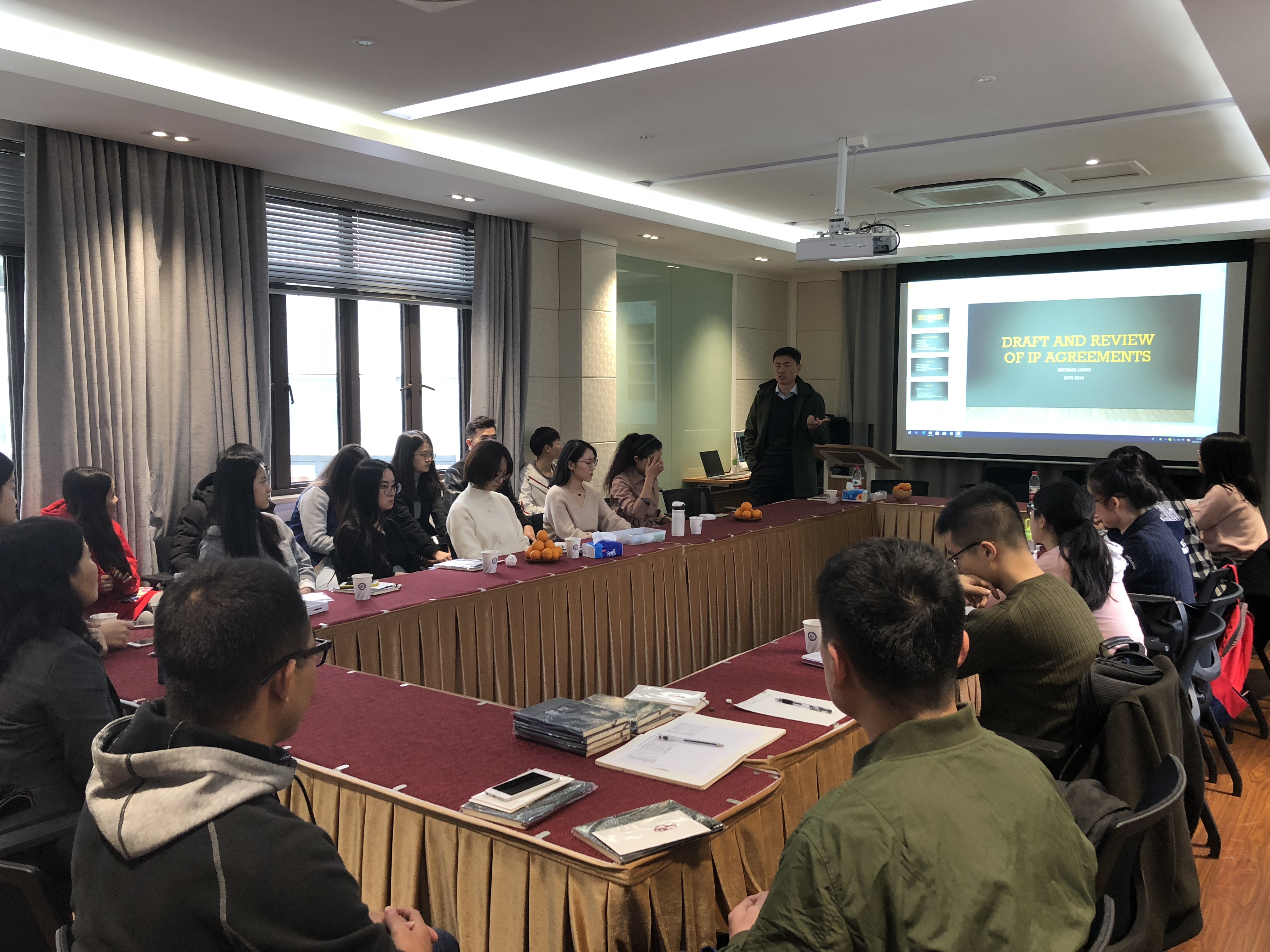 本次座谈会分三个部分。第一部分以“知识产权合同及警告函”为主题,主讲人为阿克苏诺贝尔公司合规经理梁硕。从不同类别知识产权合同的注意事项,到实例分析警告函的逻辑结构等,梁硕全面耐心地分享了其相关从业经验,使在校员工对公司知产法务有了更全面的认识。