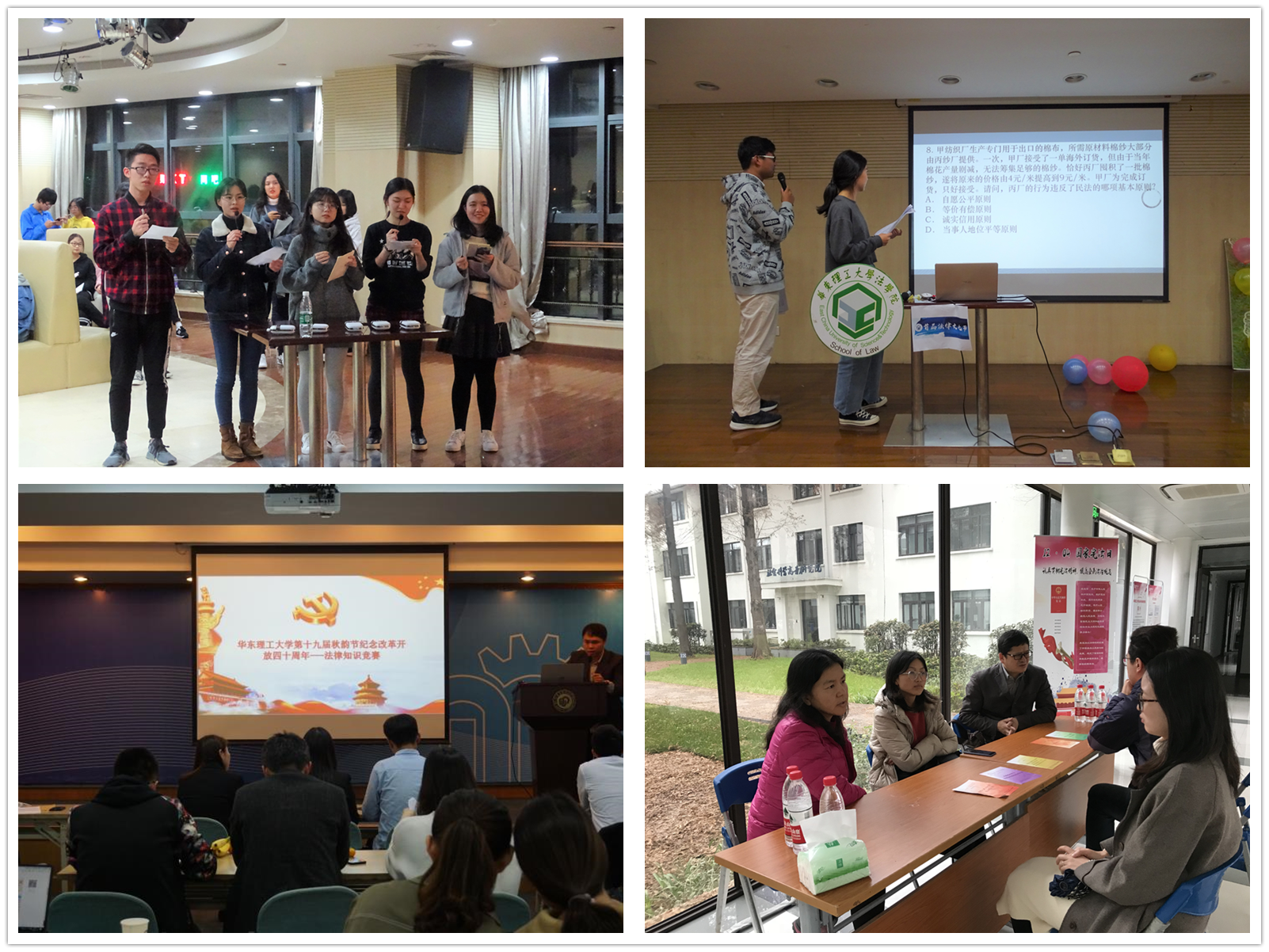 11月17日、30日公司在奉贤校区、徐汇校区分别举办了以“与法同行,砥砺奋进”和“庆祝改革开放40周年”为主题的法律知识竞赛。结合改革开放四十周年主题,通过法律知识学习、交流和比拼,展示法律才华,提升法治意识。
