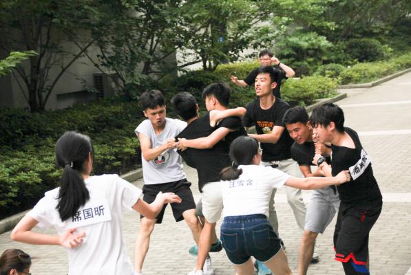 图7:“真人CS”特色团日 图8:“撕名牌”特色团日