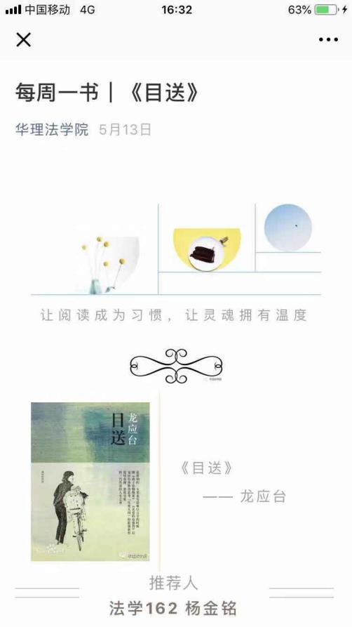 为了增进同学们的课外阅读量和知识面,由班导牵头,班委鼓励,法学161班定期开展读书交流会,同学们分享读书感悟,互相推荐好书。与此同时,伟德体育公众号每周都会发出本周推荐书目的推送,鼓励同学们通过读书丰富课余生活,并将自己认为值得一读的书籍与同学们分享
