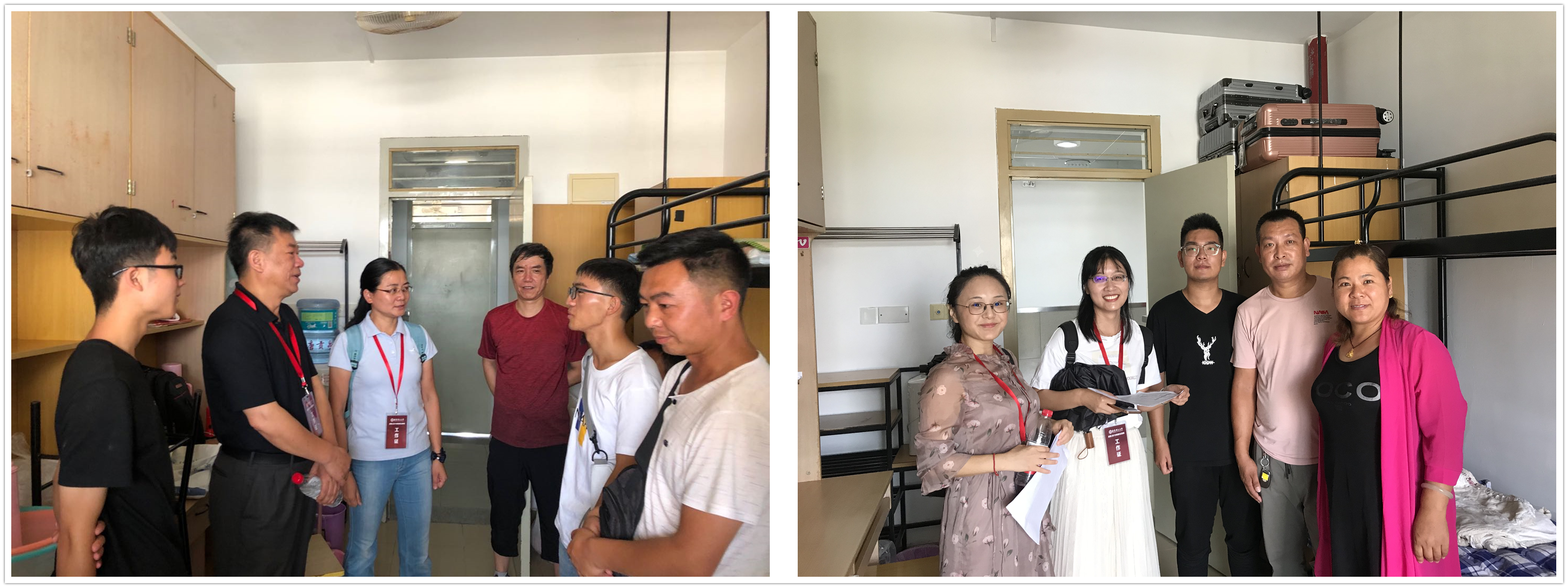 丁灏、张昱和班导师一行走访了奉贤校区新生宿舍,了解情况,详细询问员工的家乡、宿舍床铺安置情况等,表达公司对他们的关心和问候,热情地与新生、家长交流。