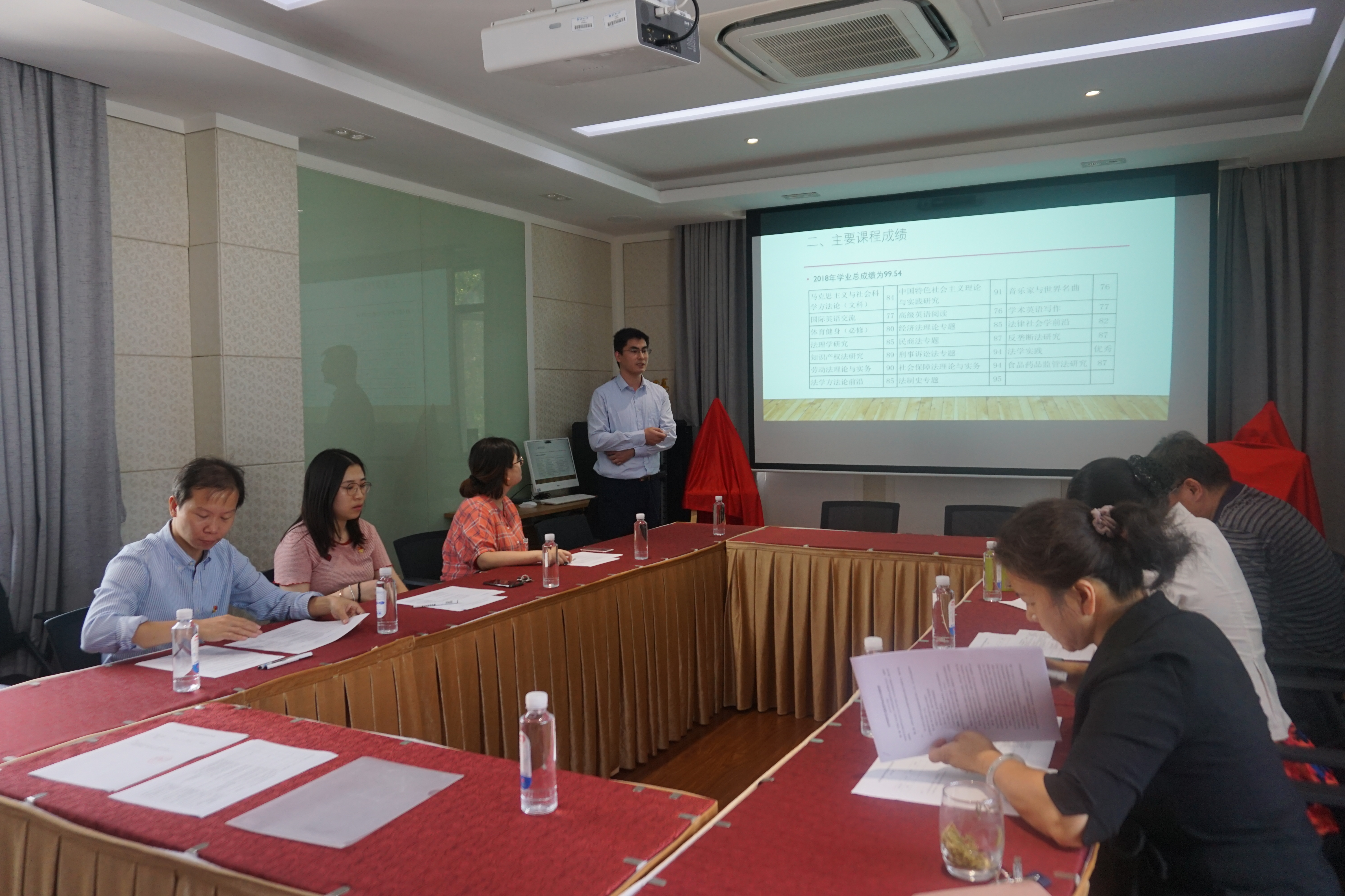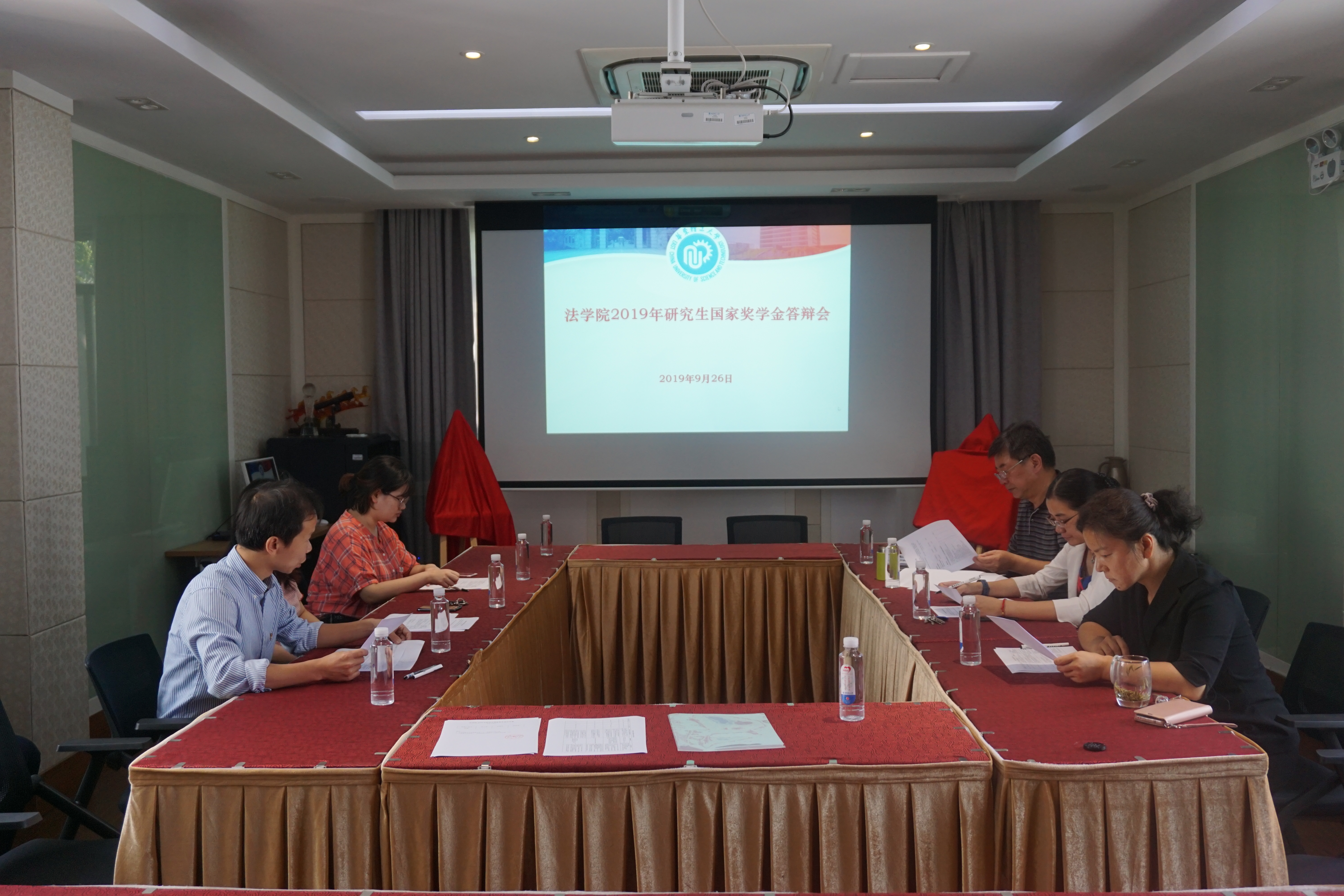 9月26日中午,伟德体育在徐汇校区团结三楼310会议室举行了2019年研究生国家奖学金公开答辩会。党委书记丁灏、经理张昱、党委副书记周建国、研究生导师祝宁波、辅导员邵雪倩、员工代表杨雨涵担任本次答辩会评委。答辩会由周建国主持。