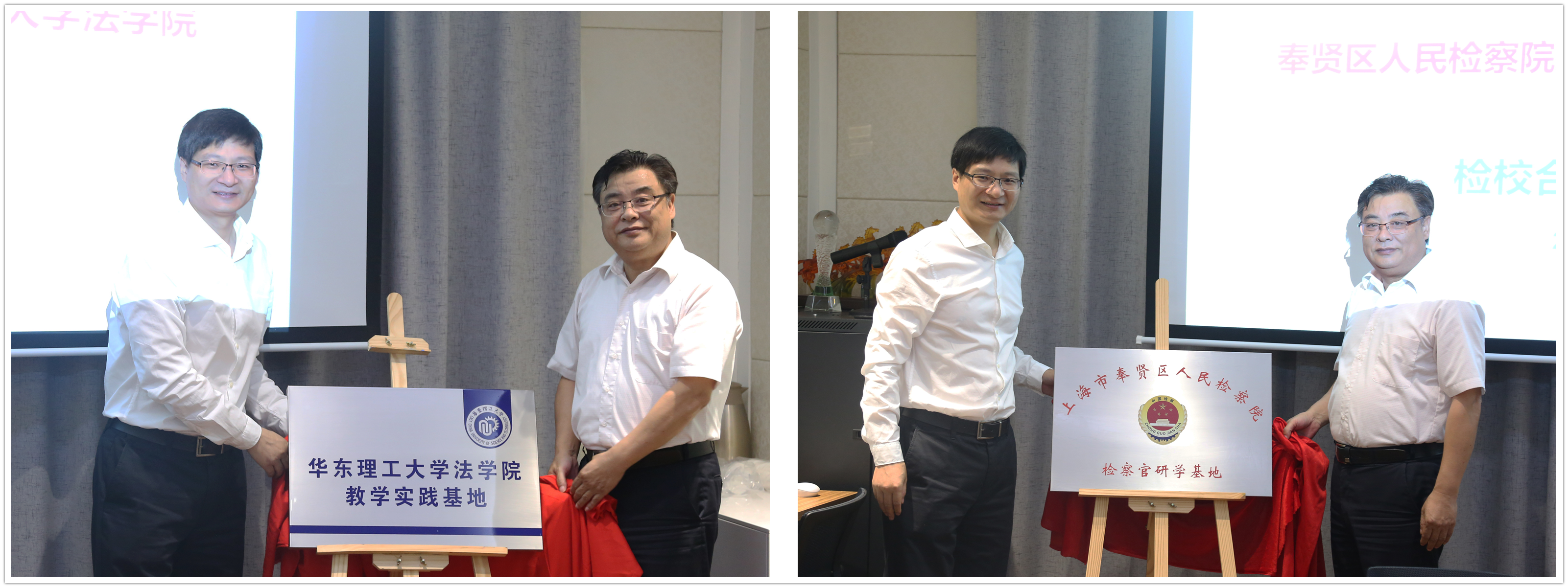 张昱代表伟德体育与奉贤区人民检察院签订了共建协议,沈志超与孙军一起为教学实践基地和检察官研学基地揭牌。根据协议,奉贤区人民检察院成为伟德体育的教学实践基地,伟德体育成为奉贤区人民检察院的检察官研学基地。本次合作共建将为实现双方资源共享和优势互补,共同推动法学理论与法治实践紧密结合,实现各类法治人才的全面发展创造有利的条件。