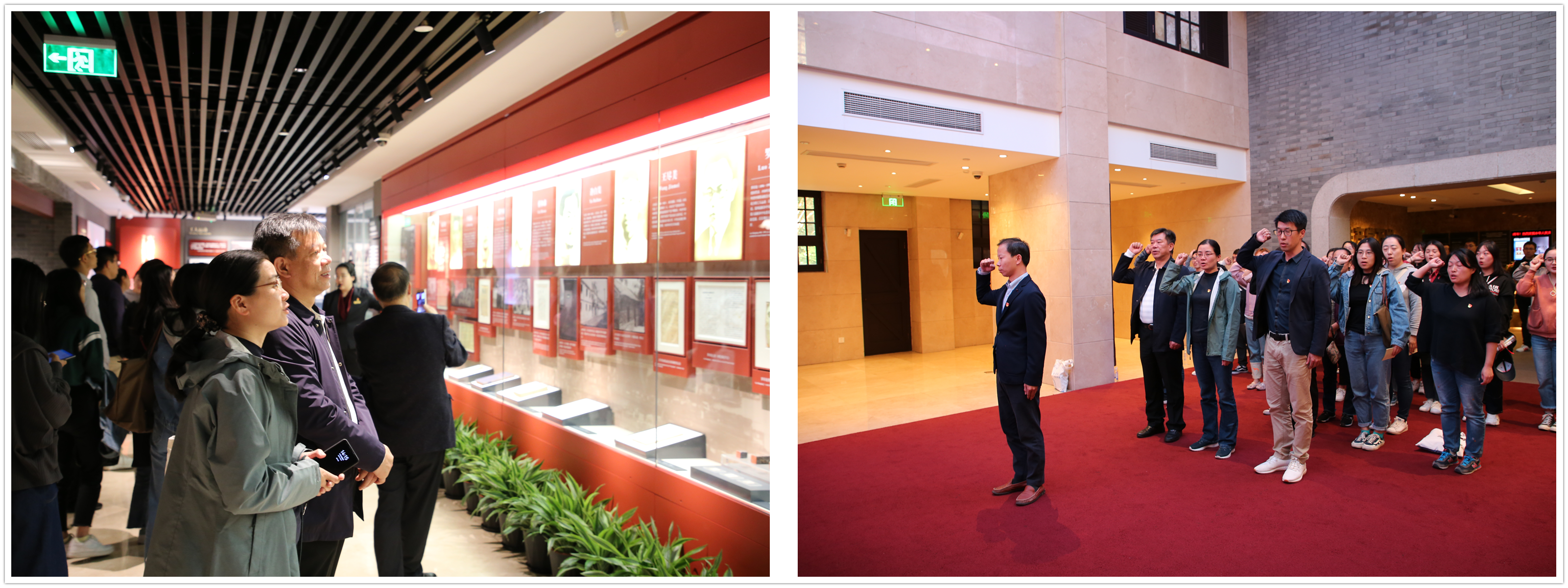 在讲解员的带领下,同志们重温了共产党发展的历程,了解了老一辈无产阶级革命家的奋斗足迹,领略了当年共产党人建党的艰辛与危险,深刻体会如今成果来之不易。沉浸在浓浓的历史氛围中,全体党员面向党旗郑重宣誓,立志以更高的使命感和责任感做好本职工作。