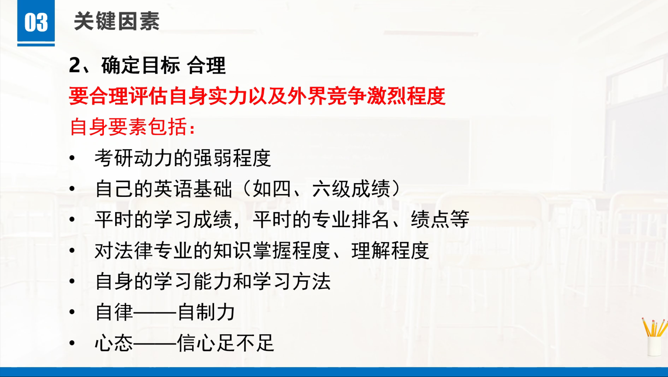 首先,周建国对伟德体育近三届本科生的考研、保研及相关录取情况进行了细致的分析,通过相关数据揭示了历年来考研形势的严峻性,同时针对伟德体育目前2017级同学的考研意向调查情况做了深入分析,并对员工择校主题提出了“选择明确”“细化具体”“目标合理”等几点要求。此外,周建国针对计划执行阶段和心态调试等方面给同学们提供了宝贵的建议和方法,为伟德体育的考研新生力量打上一针强心剂。