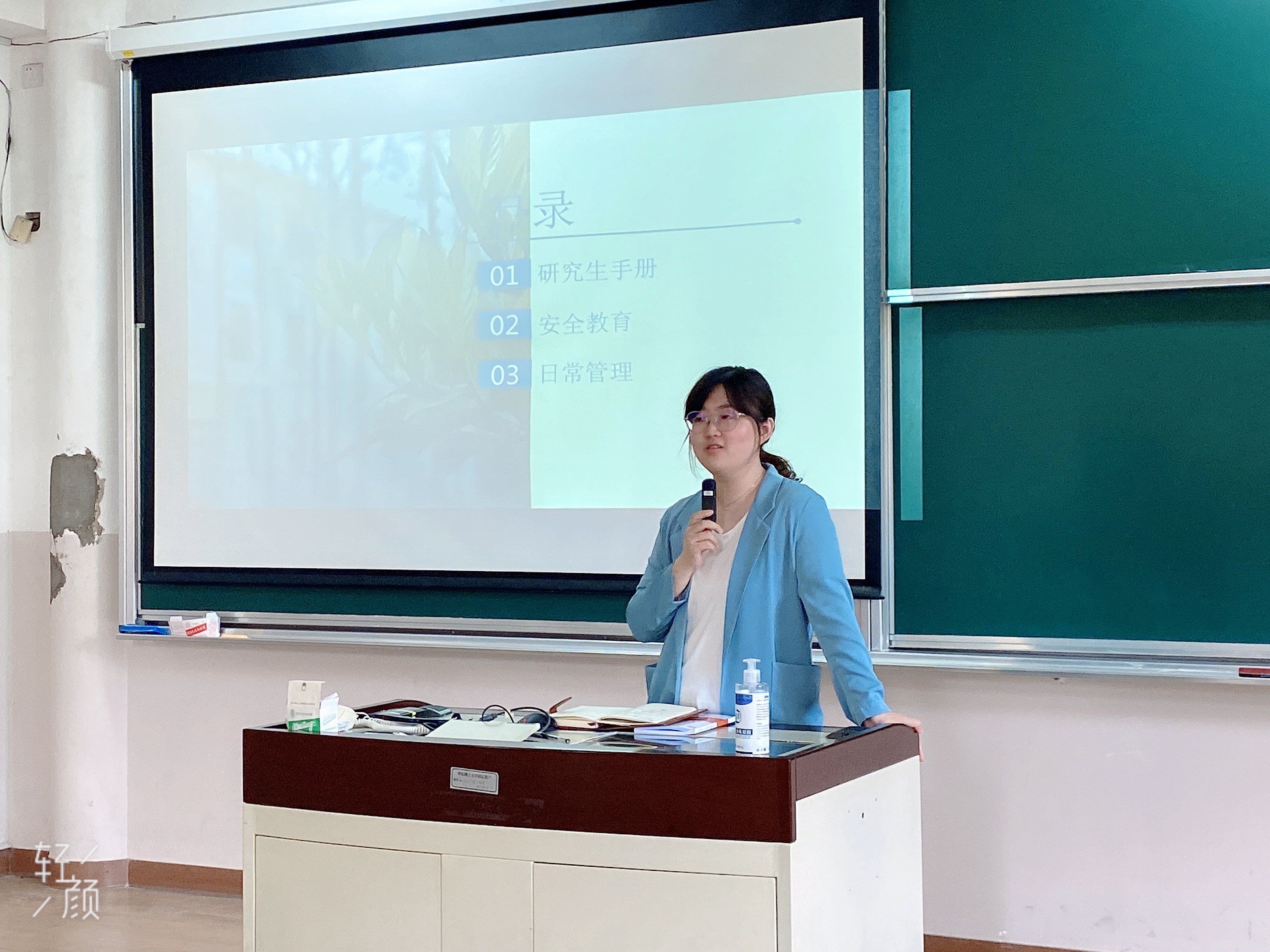 耿丽娟就公司产品方案、研究生课程考核、成绩管理办法等作了详细介绍和指导。通过列举研究生教学管理和学术学风的案例,她要求同学们明确自身学习目标,掌握学习进度,积极与导师交流沟通,严格遵守学术道德、学术诚信。