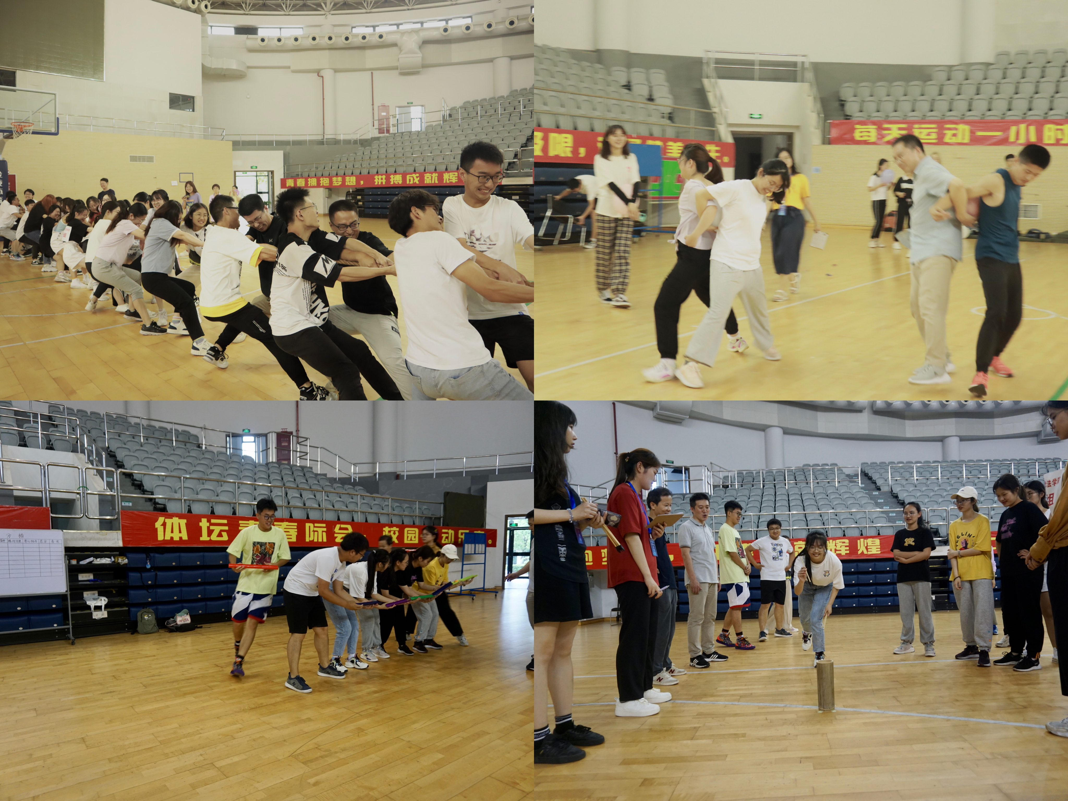 本次师生趣味运动会将拔河作为预热环节,设置了“背对背拥抱”““百发百中”“珠行万里”“齐心协力”以及“指压板跳绳”5个团体比赛项目。8支参赛队伍团结互助,奋力拼搏,体现了开拓创新、勇往直前的精神风貌。