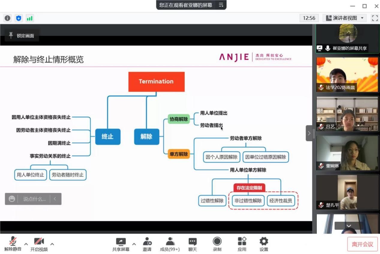 粟瑜对崔亚娜的精彩演讲表示感谢,鼓励同学们通过劳动合同的解除这一重点知识,对劳动合同法的相关内容做到融会贯通,积极关注实务问题,增强理论联系实际能力。
