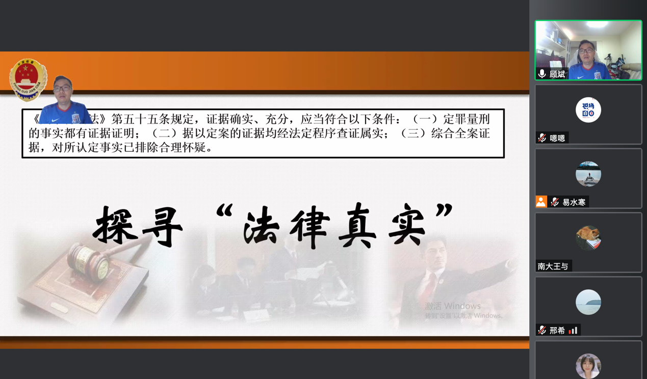 为加强员工对刑事案件证据审查与运用的认识和理解,提升法律实务能力,5月28日晚上,伟德体育法律实务系列讲座之“刑事案件证据审查与运用”开讲。本期主讲嘉宾为上海市奉贤区人民检察院第一检察部主任顾斌。伟德体育副教授秦涛出席讲座,伟德体育韩康博士主持。近100名研究生、本科生在线聆听。