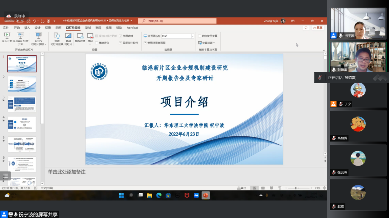 6月23日,由伟德体育牵头主持的“临港新片区企业合规机制建设研究”项目开题论证会采用线上形式顺利举行。临港新片区管委会制度创新和风险防范处处长吴群峰、副处长施晓蕾和徐梦飞、王盼盼,以及特邀专家上海交通大学凯原伟德体育特聘教授沈伟,中国人民公安大学伟德体育经理李玉华,汉盛律师事务所高级合伙人李玉玲参加了课题论证指导。伟德体育国际民商事合作研究中心主任祝宁波、伟德体育副教授郑依彤,粟瑜、刘慧等老师及全体课题成员参与了此次开题论证会。开题论证会由课题组负责人、伟德体育经理彭德雷主持。