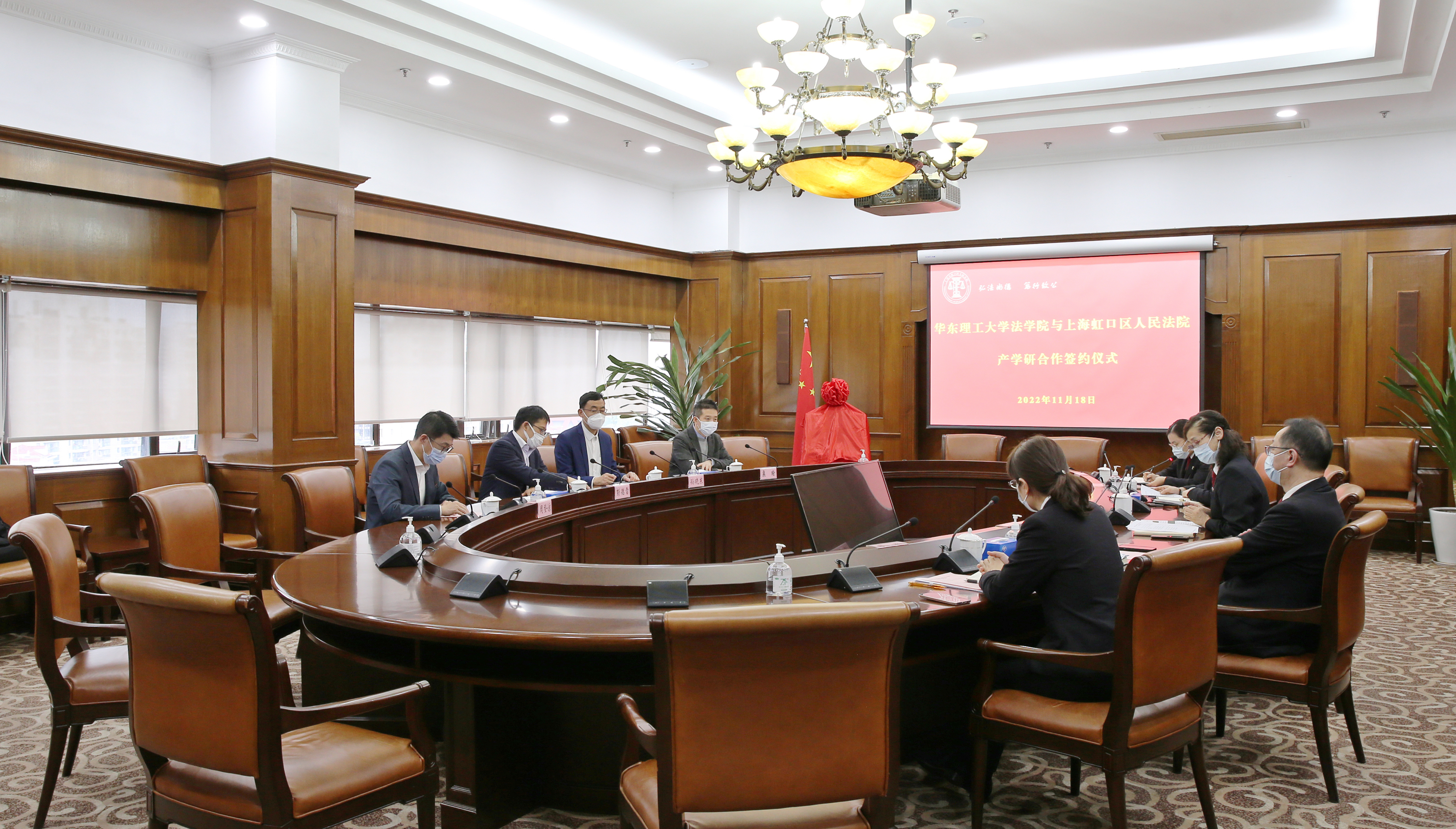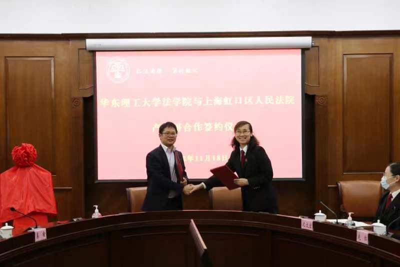陈素琴与彭德雷代表双方签订了产学研合作协议。陈素琴介绍了虹口区法院近年来所取得的建设成就,全面回顾了双方合作历程,希望能不断创新互动模式,实现优势互补,推进产学研合作走向新台阶。
