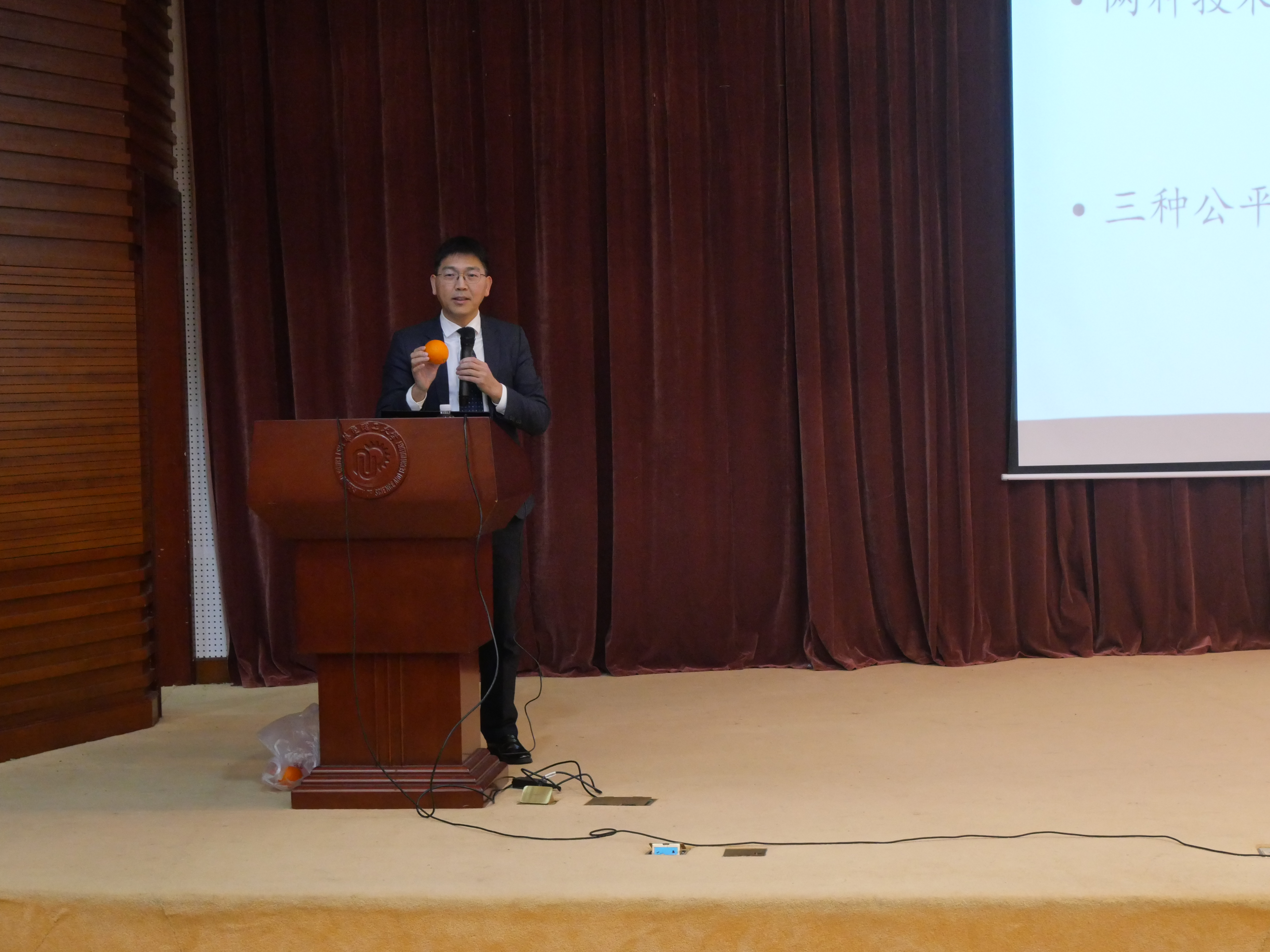 罗培新以卡尔•拉伦茨的名言引出其价值判断,借助道具生动形象地阐释了价值与技术的关系,以及无知状态、经济领域、社会领域三种公平观。通过多样化的现实案例,他从经济与社会领域的不同视角阐释了价值判断的不同路径。在对基础问题的探讨中,以现场互动的形式,从日常生活中常见的拾得遗失物的事例出发,分享了两种不同法治维度,带领大家关注事实行为背后的法律逻辑。同时,他旁征博引,从吕氏春秋、王阳明的“知行合一”思想到哈佛教授迈克尔•桑德尔的衡平性法治思维、康德的古典道德哲学,探讨不同情境下的价值判断与技术理性。