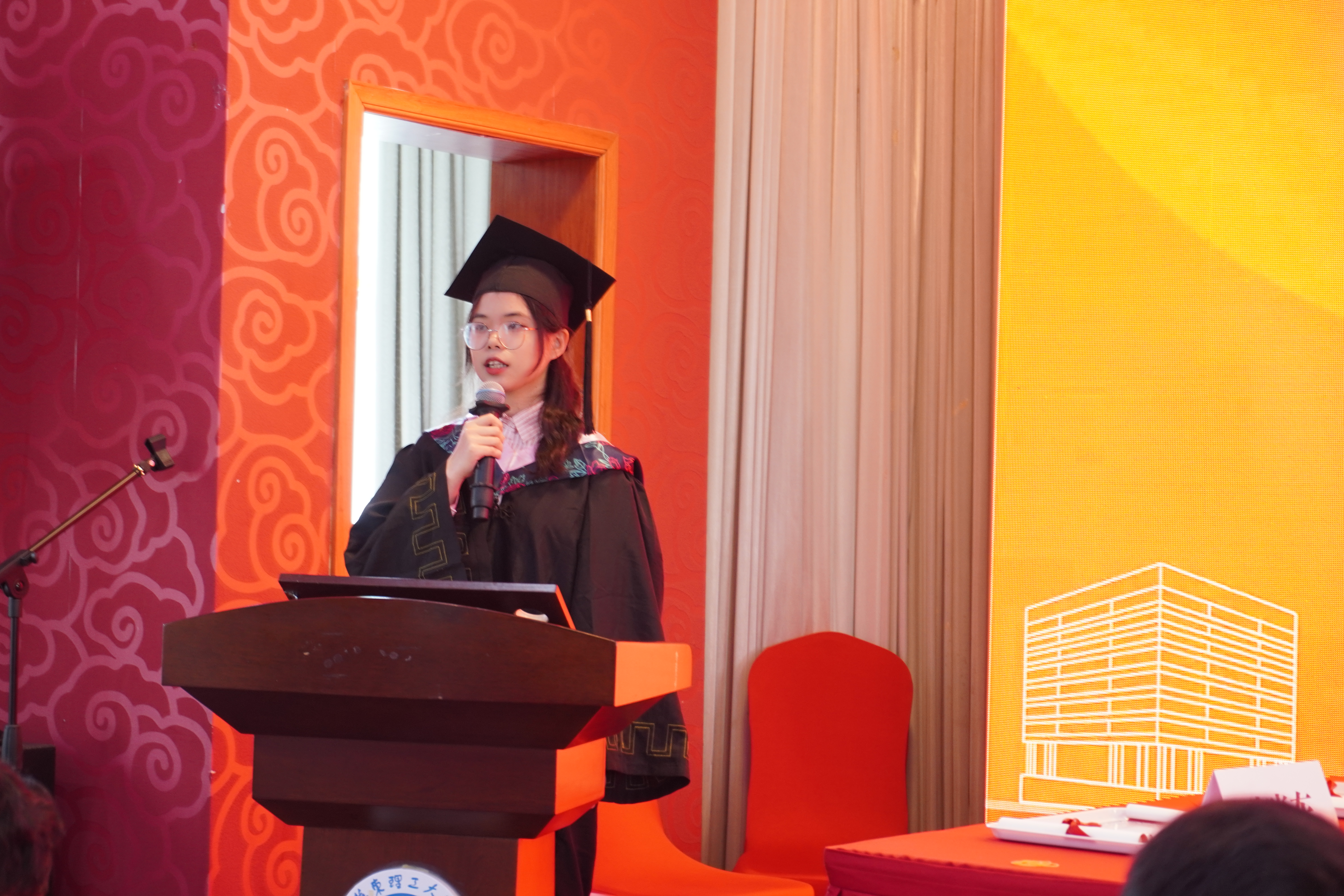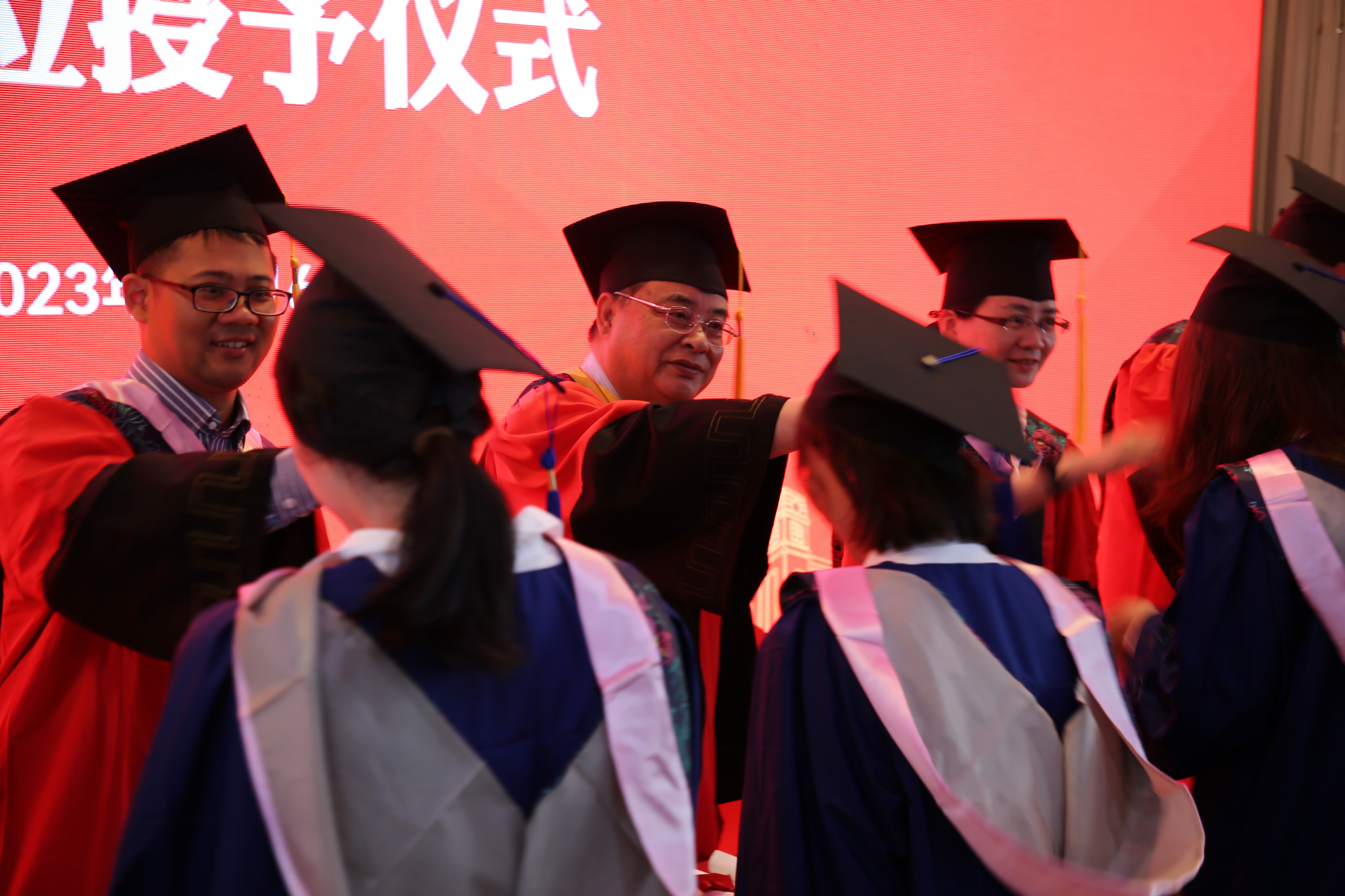 董事长轩福贞以“静心行远,做新征程上的奋斗者”为题为毕业生送上殷切嘱托。全体毕业生宣读毕业誓词,宣誓自己将继续践行“勤奋求实、励志明德”的校训。随后,校、院领导为毕业生一一拨穗正冠,并赠送毕业纪念卷轴。