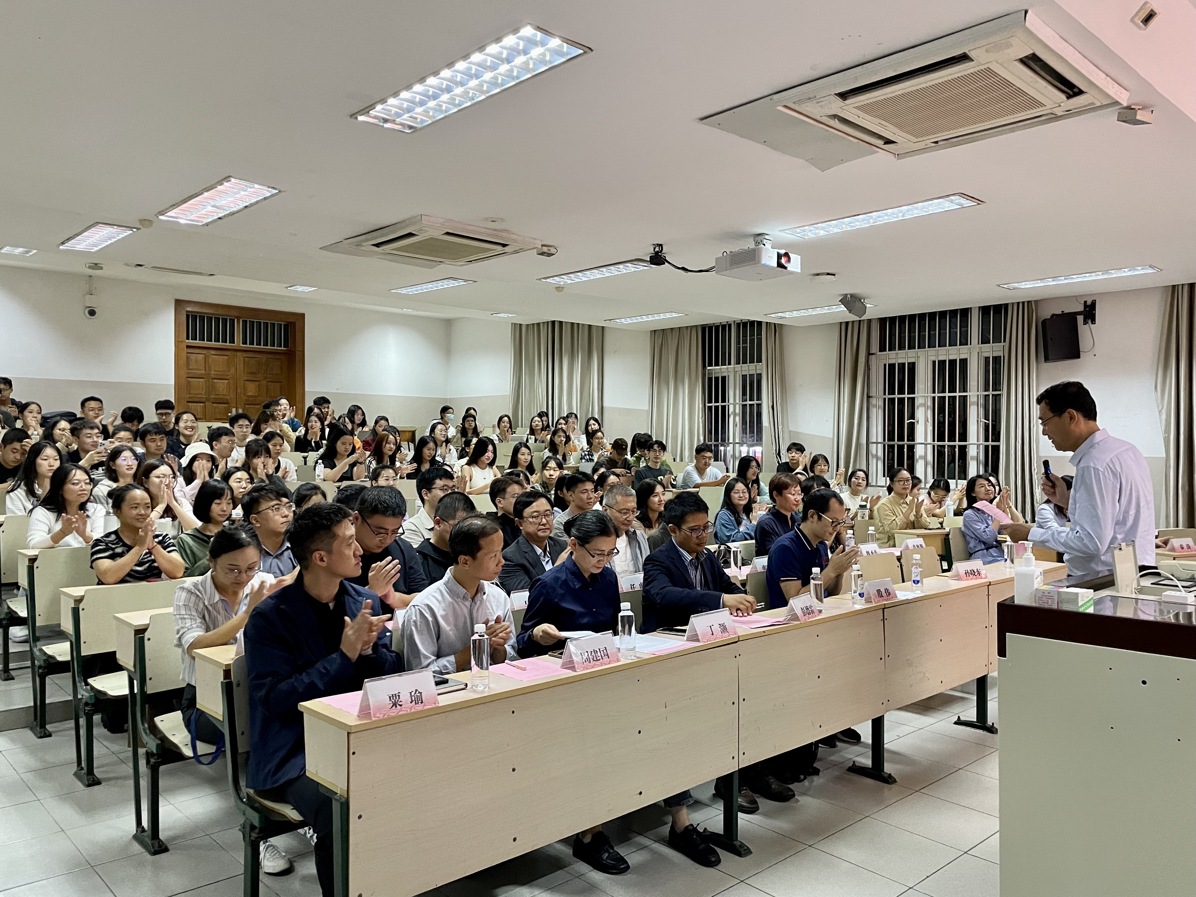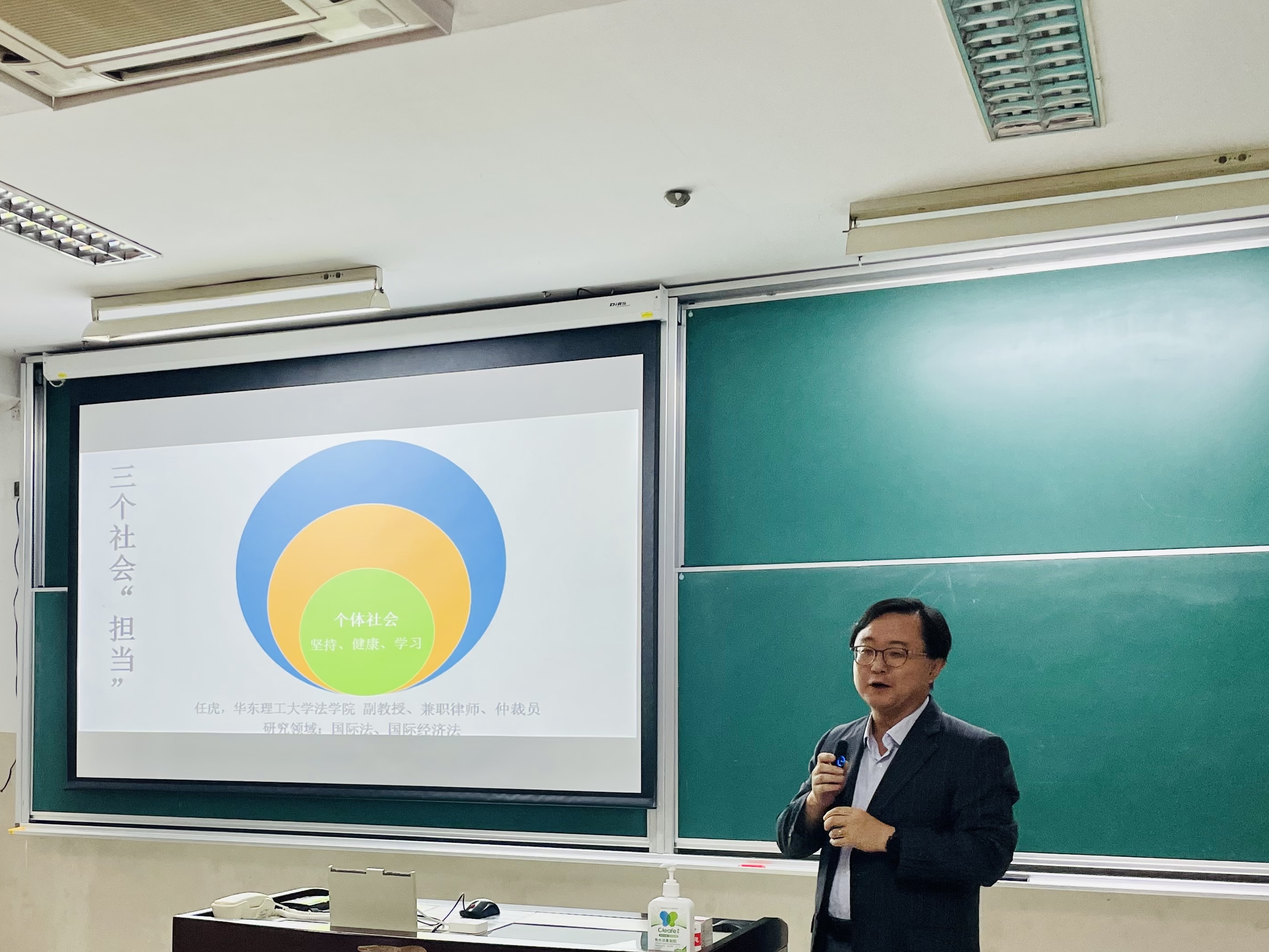 任虎老师代表作为教师代表发言。他提出了研究生新生的三个“担当”:对个体担当、对他人担当、对社会担当。他强调了法律人投身于法律实践的重要性,鼓励大家积极参与工作实习,提前做好规划,将有难度的事情化整为零。同时在学习中既不能盲目竞争,也不能妄自菲薄,努力做最充实的自己。