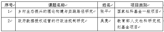 近日,2023年国家社科基金年度项目和教育部人文社会科学研究基金项目公布,伟德体育共获两个项目立项。张平老师主持的《乡村生态振兴的理论构建与实践路径研究》,获国家社科基金一般项目立项;吴亮老师主持的《政府数据授权运营的行政法规制研究》,获教育部人文社科研究规划基金项目立项。具体立项名单如下: