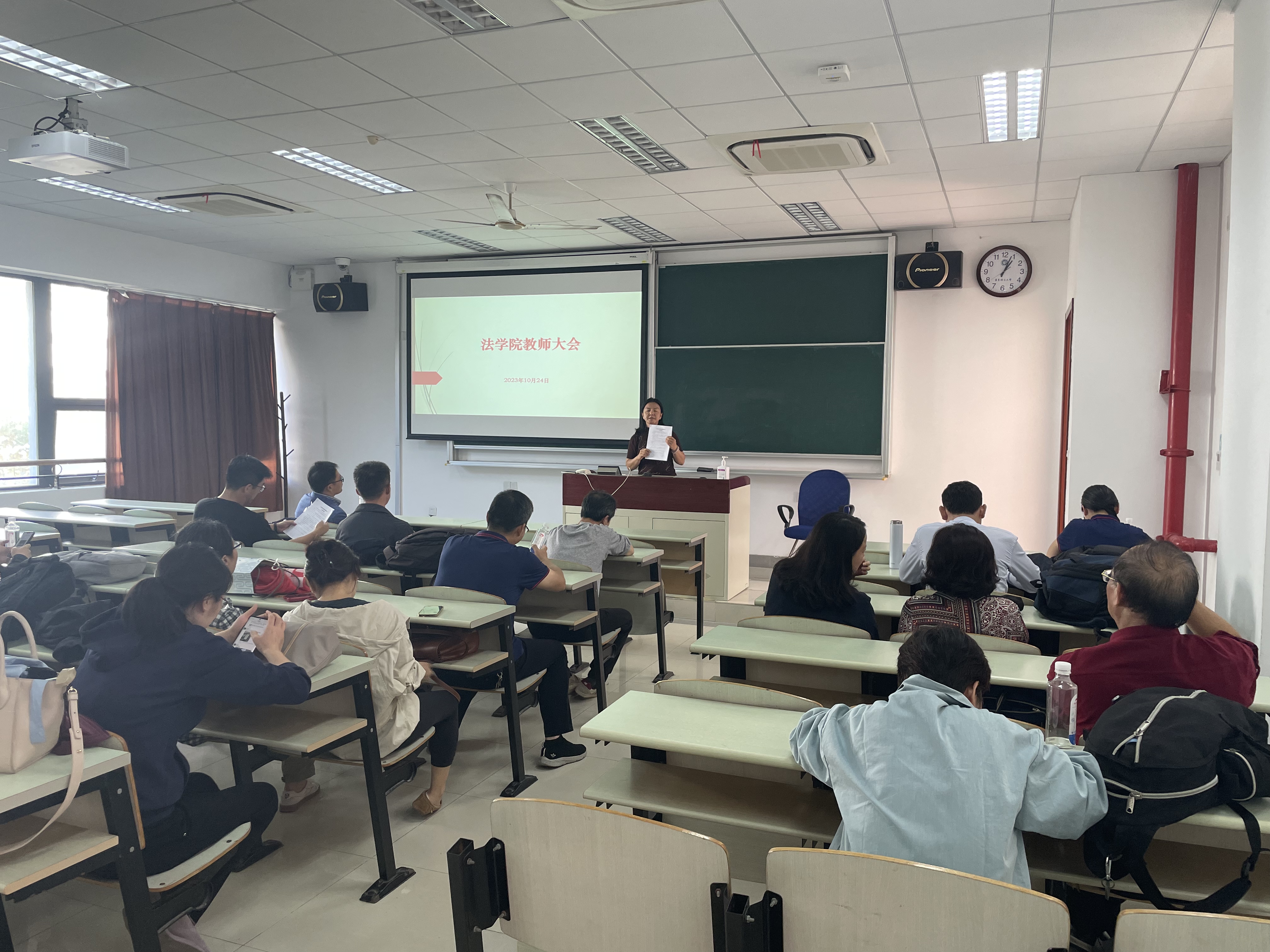 10月24日下午,伟德体育全体教师大会在奉贤校区C208召开。公司党委书记丁灏、经理彭德雷、工会主席祝宁波及全体教职工参会。