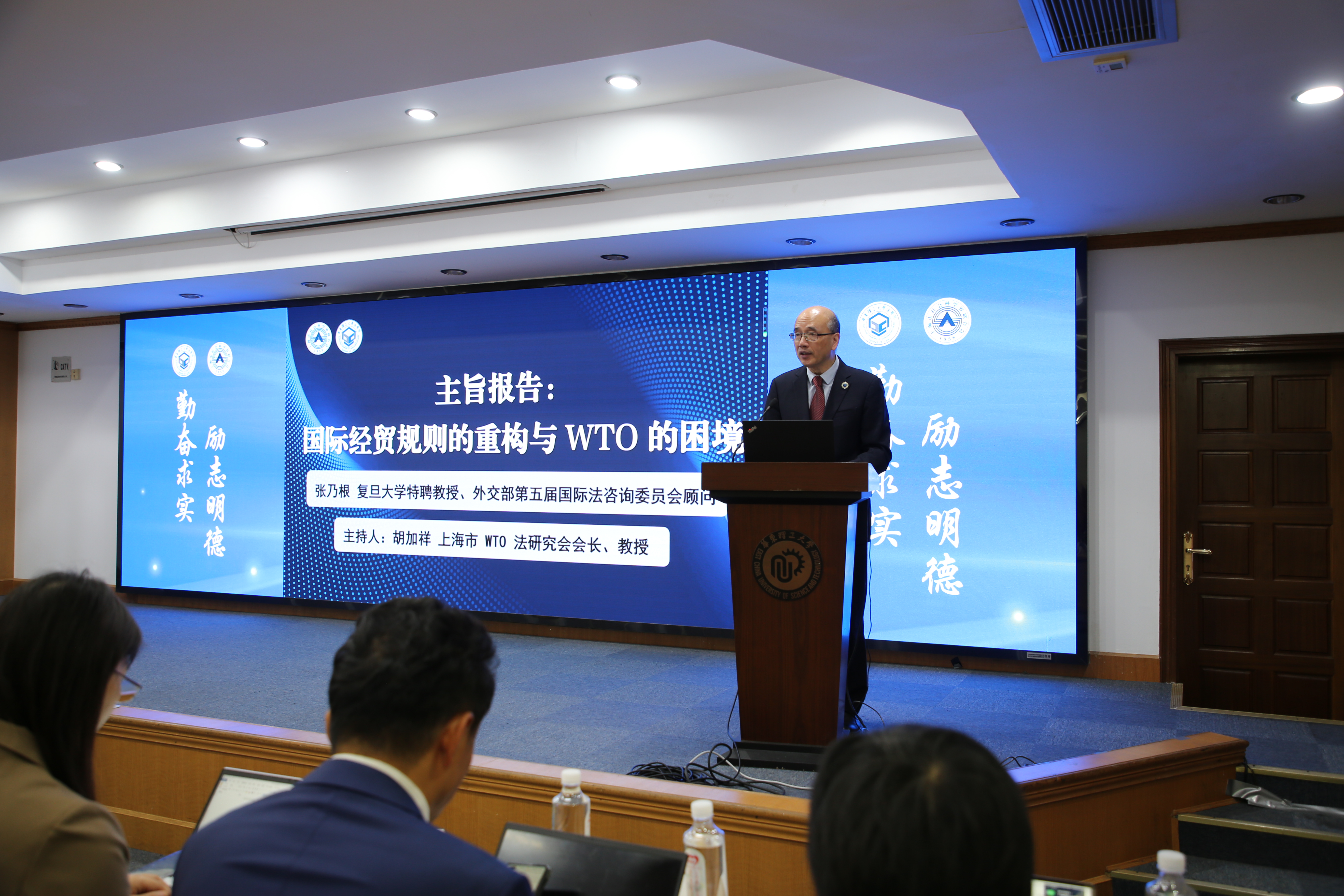 今年恰逢上海市WTO法研究会成立十周年。上海市WTO法研究会会长、上海交通大学凯原伟德体育胡加祥教授,伟德体育经理彭德雷教授,上海市社会科学界联合会杨琳女士分别代表研究会、承办方和指导单位发言。