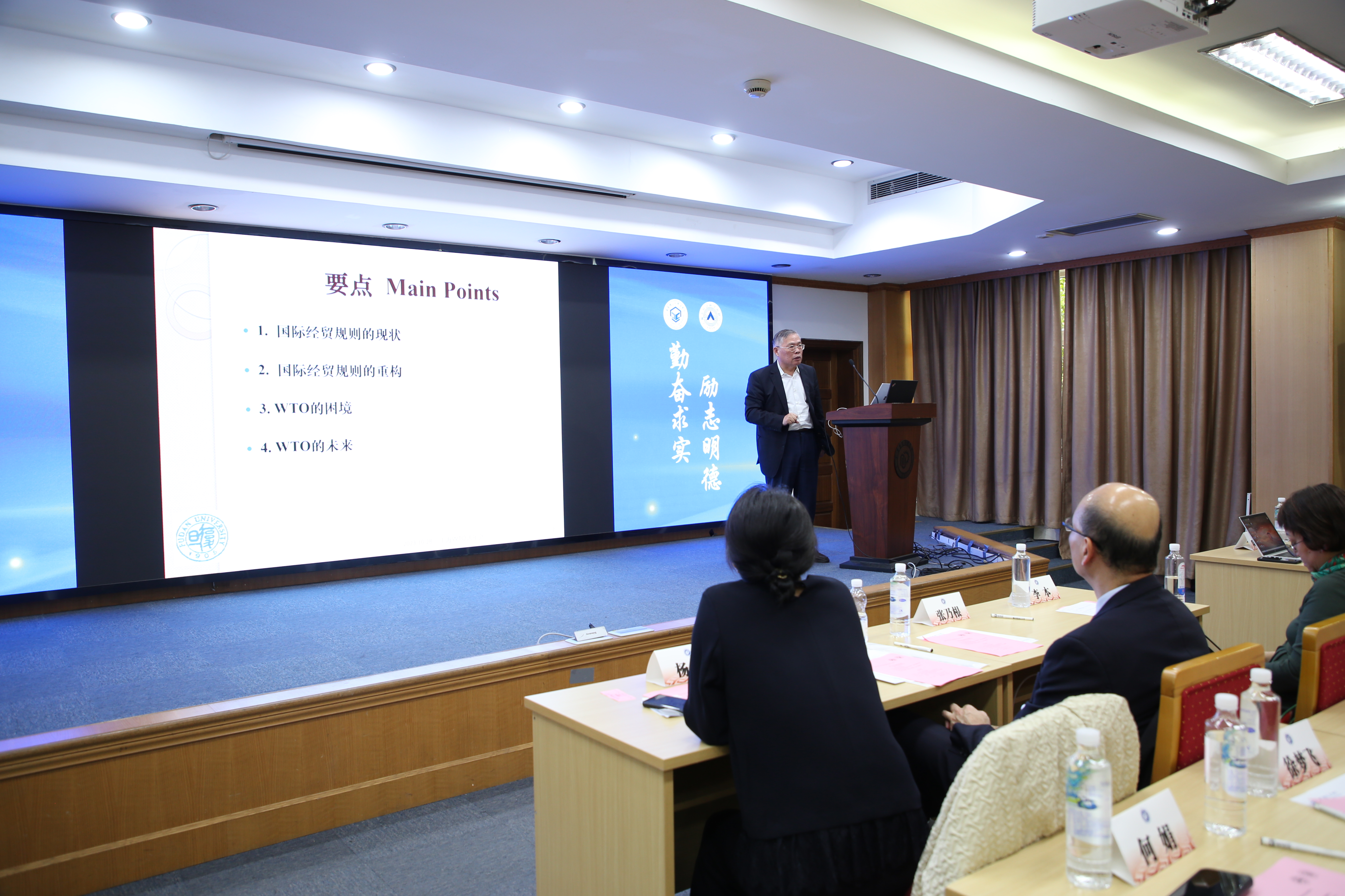 复旦大学特聘教授、外交部第五届国际法咨询委员会顾问张乃根围绕“国际经贸规则的重构与WTO的困境”作了主旨演讲。他从研究会以WTO法为学术研究对象的初衷和创建历史出发,引出了目前国际经贸规则的困境,分析了未来WTO改革的难点和路径。