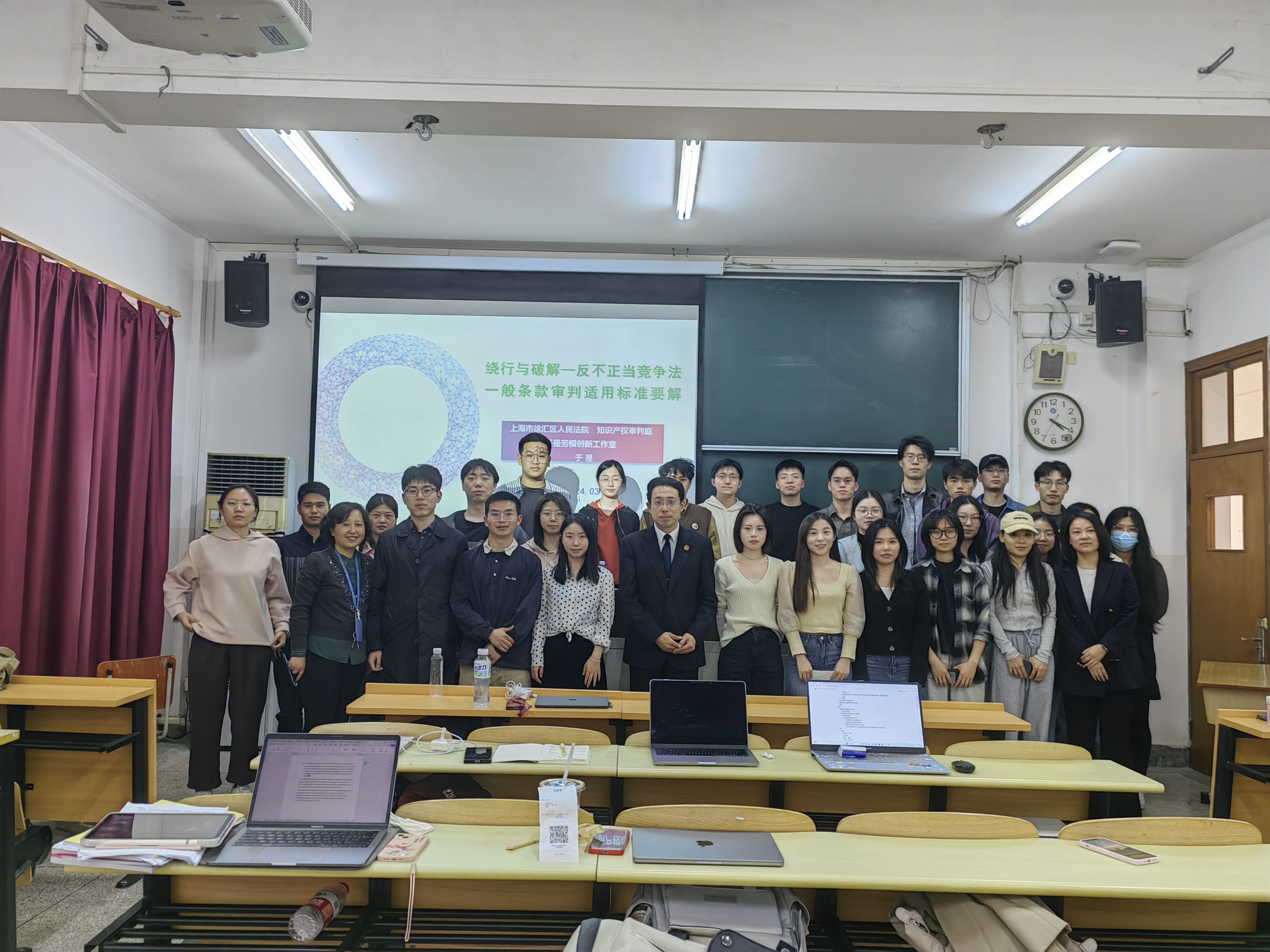 于是法官的讲座铿锵有力,深入浅出,引人深思。讲座结束,于是法官耐心回答了同学们的问题,并与到场师生合影留念,为这次讲座画上了圆满的句号。
