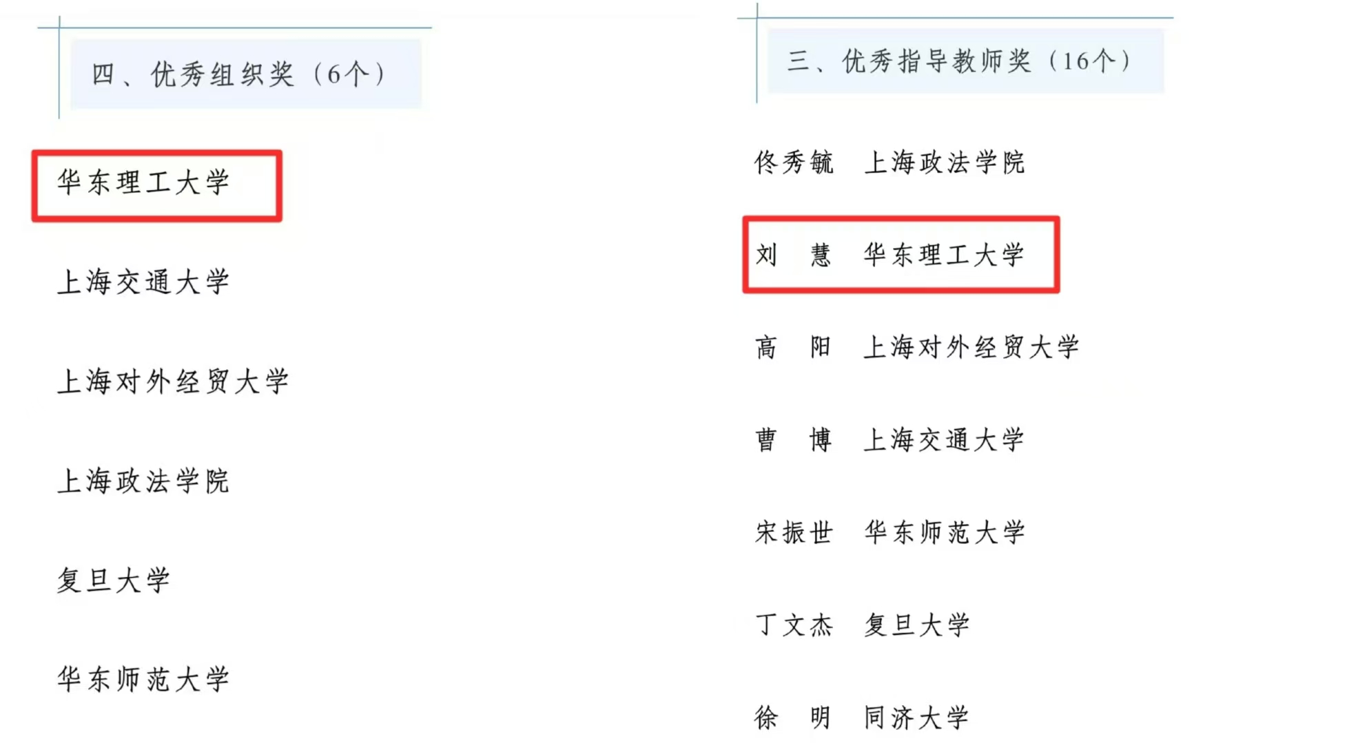初赛阶段,华理代表队成员方伟群、王纪敏、赵效慧、刘中宇、朱昕玙、于海洋、王柔懿7位同学脱颖而出,荣获“优秀个人奖”。他们以扎实的知识、敏捷的思维和出色的团队合作,为华理赢得了荣誉。