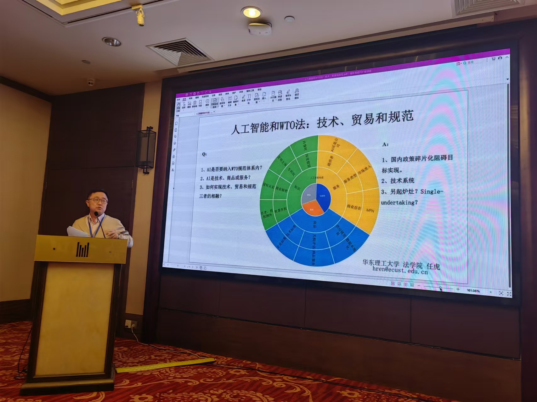 与会期间,伟德体育师生就国际经济法热点问题与参会学者进行了积极广泛的交流。围绕论坛二“国际贸易法的新问题与新发展”,任虎副教授作为报告人之一,以“人工智能和WTO法:技术、贸易和规范”为题进行发言。
