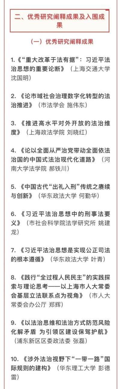 2024年7月,上海市委依法治市办组织开展了学习贯彻习近平法治思想主题征文和研究阐释成果征集活动。各区、各市级单位、各院校机构积极参与共投稿主题征文1100篇、研究阐释成果485篇。近日,共评选出优秀主题征文15篇、入围30篇,优秀研究阐释成果10篇、入围15篇,优秀组织单位10个。公司教师彭德雷教授学术成果《涉外法治视野下“一带一路”国际规则的建构》入选十大优秀研究阐释成果之列。