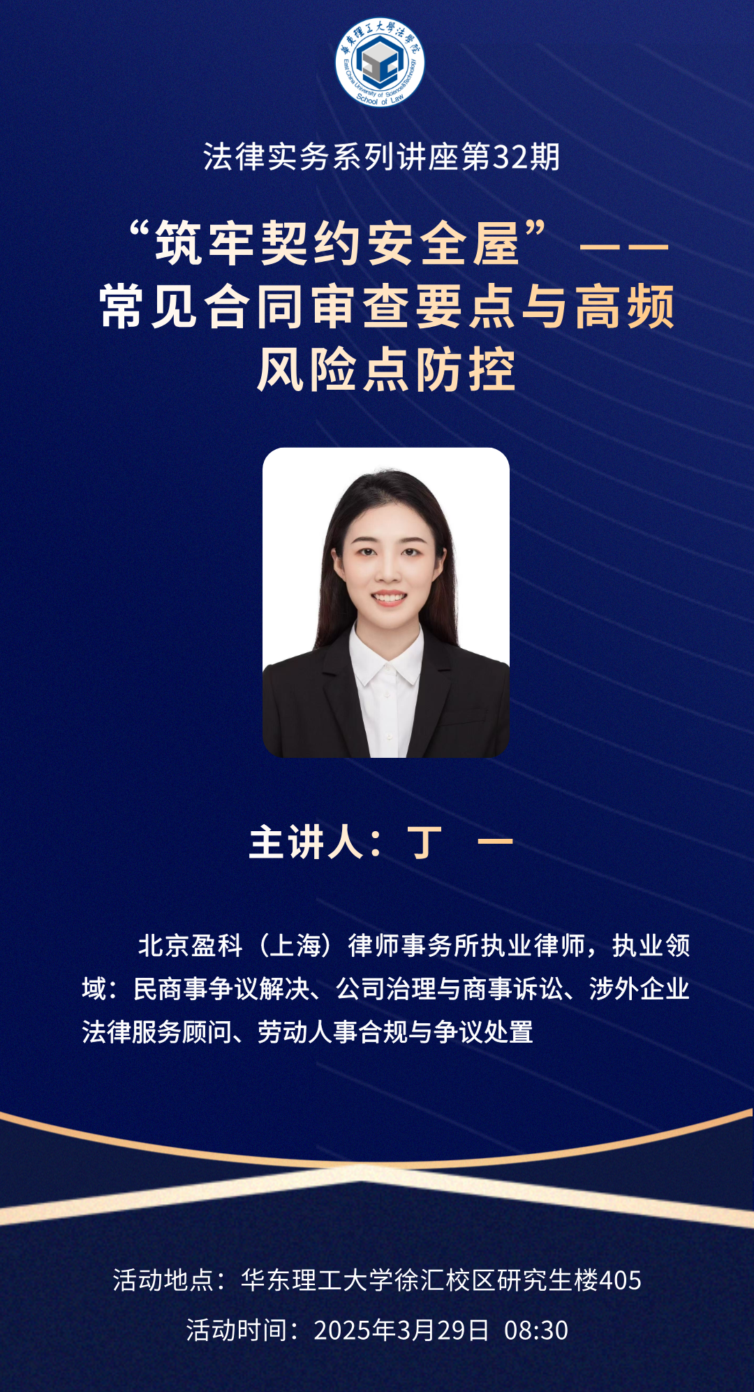 讲座预告-“筑牢契约安全屋”——常见合同审查要点与高频风险点防控