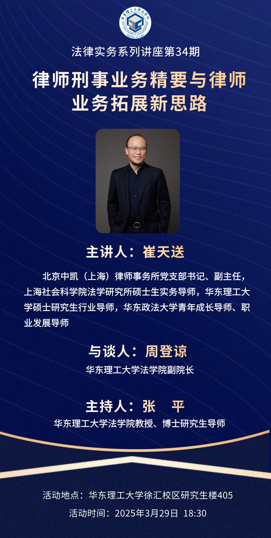 讲座预告-律师刑事业务精要与律师业务拓展新思路