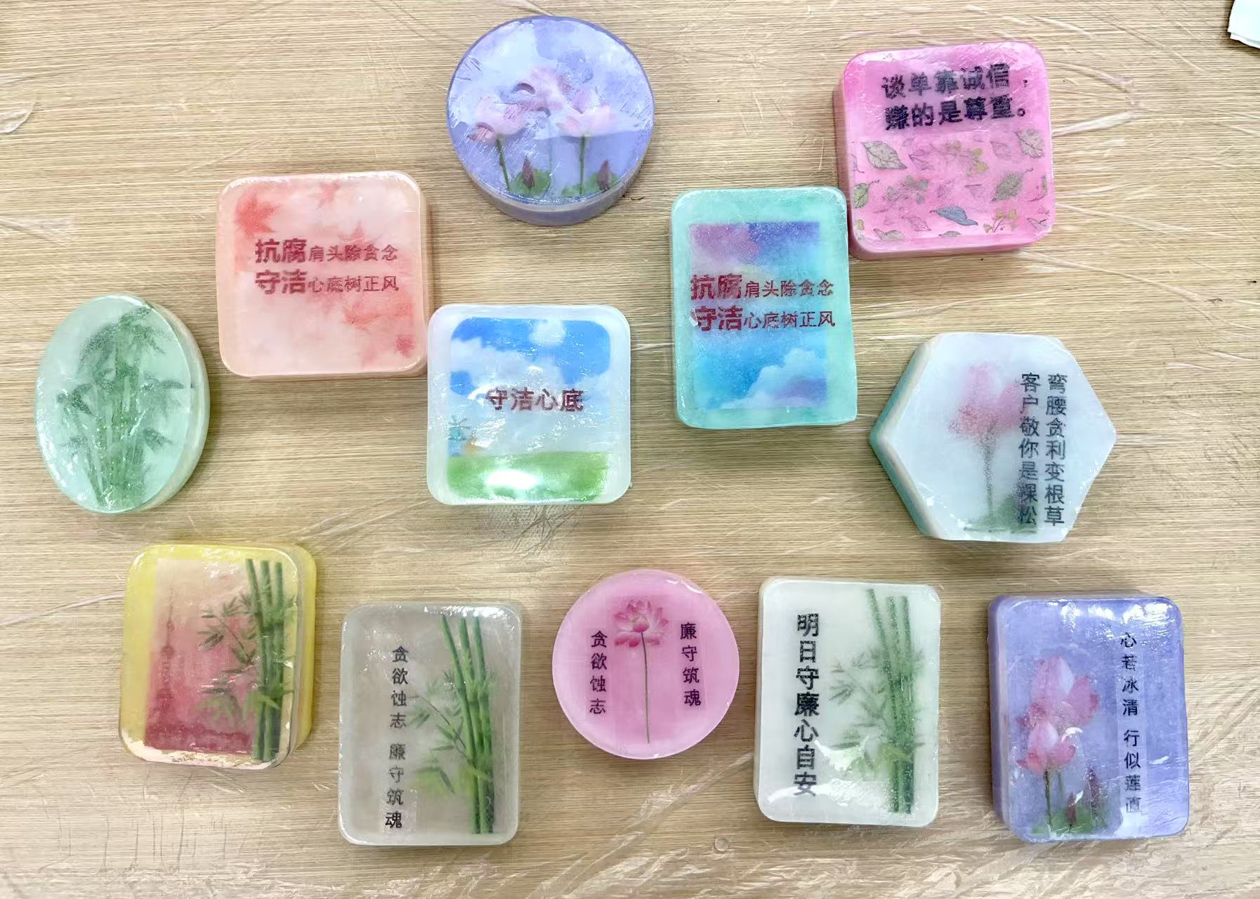 随后,与会师生们兴致盎然地投入廉洁主题手工香皂制作。从熔化皂基,到调色调味,再到入模定型,最后包装设计,承载廉洁寓意的独特香皂在指尖诞生。整个制作过程,不仅是一次手作体验,更成为廉洁理念具象化、情感化的生动载体。