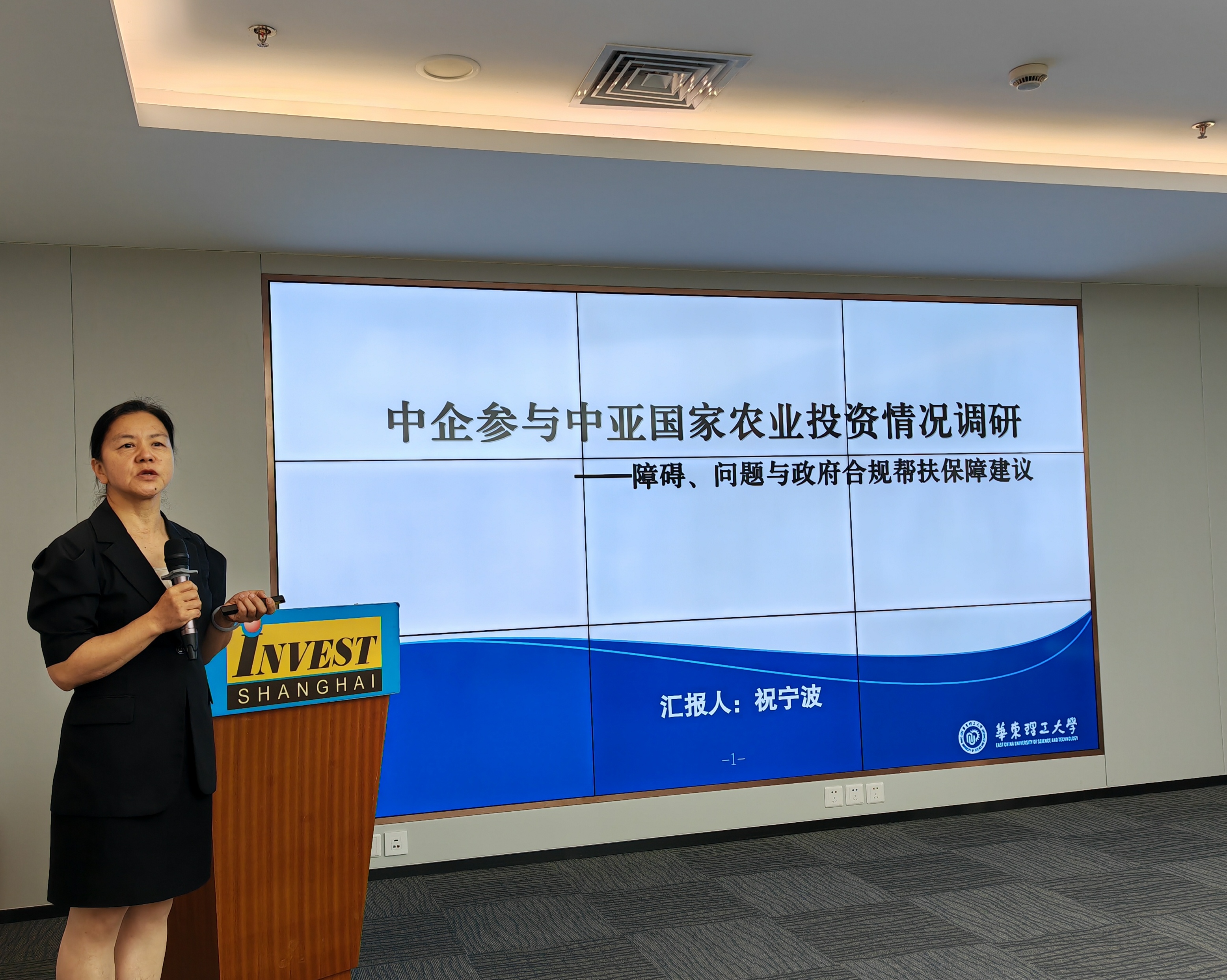 交流环节,公司祝宁波副教授、任虎副教授分别以“中企参与中亚国家农业投资情况调研——障碍、问题与政府合规帮扶保障建议”“外国仲裁裁决的国内承认与执行实务”为题分享研究成果。公司涉外科技法治中心副主任肖梦黎与上海市外国投资促进中心联络活动部部长刘刚就未来双方的合作形式、合作内容等进行了展望。