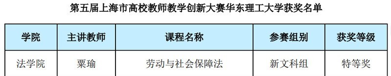近日,第五届上海市高校教师教学创新大赛获奖名单公布(沪教委高〔2025〕22号),公司粟瑜副教授荣获新文科组特等奖。参赛团队成员包括周登谅副教授、郑依彤副教授、祝宁波副教授。
