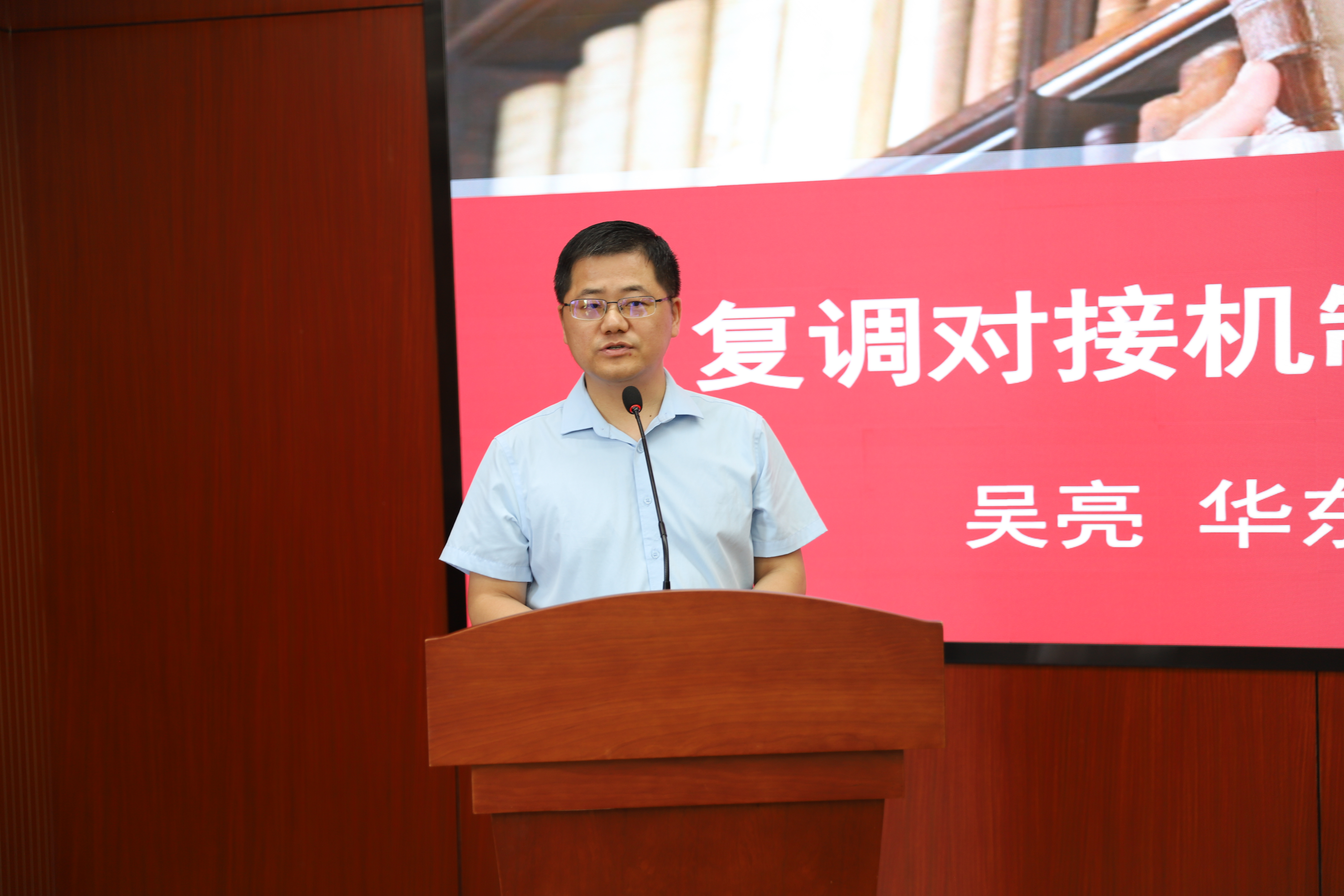 吴亮教授以“复调对接的三个法理追问”为题进行主题发言,围绕复调对接的必要性、复调对接的局限、复调对接的完善方向进行了分析论述。他还代表上海市全面依法治市基层治理研究基地(Bevictor伟德官网),对上海市区各级行政复议机关对基地承担的上海全面依法治市重点课题——“上海市行政复议联动调解机制研究”调研给予的大力支持表示感谢。